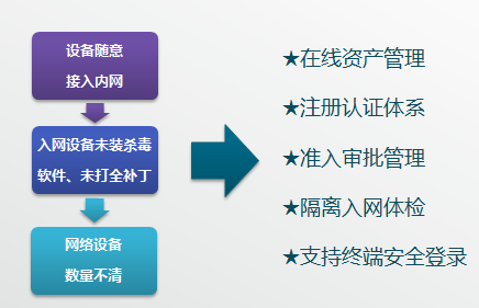 采用多重網(wǎng)絡(luò )準入控制技術(shù),對未注冊終端訪(fǎng)問(wèn)網(wǎng)絡(luò )進(jìn)行準入控制,滿(mǎn)足等保中“安全區域邊界”非授權設備私自聯(lián)入內網(wǎng)的管控要求。