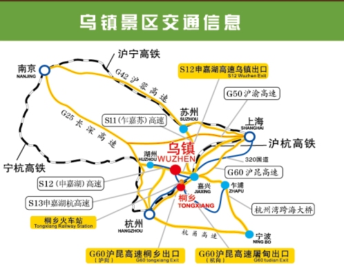 烏鎮位于浙江省的北部,交通便捷,高速公路直達上海、杭州和蘇州,距離分別為120公里、80公里和89公里。