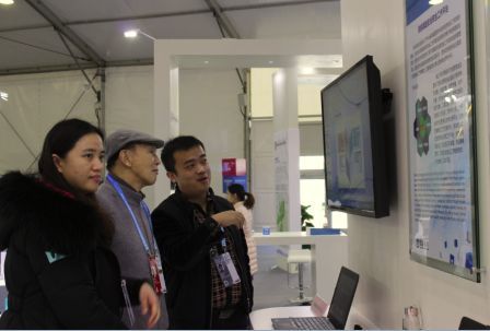 圖1:中國工程院院士何德全(中)聽(tīng)取遠望信息咨詢(xún)服務(wù)部經(jīng)理胡博(右)講解
