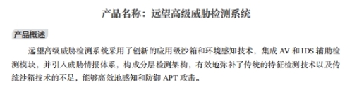 ·病毒防治產(chǎn)品:遠望高級威脅檢測系統