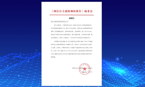 連續多年參編《2022網(wǎng)信自主創(chuàng )新調研報告》安全管控、數據安全、邊界安全等章節內容,賦能信創(chuàng )產(chǎn)業(yè)發(fā)展。