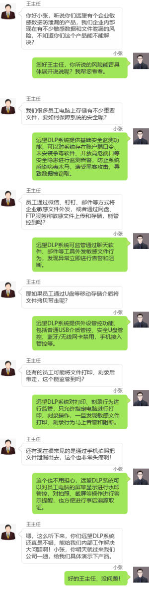 王主任頭疼之余,一個(gè)朋友向他推薦了遠望數據防泄漏衛士(DLP)產(chǎn)品,說(shuō)這款產(chǎn)品應該能讓他完成領(lǐng)導交代的任務(wù),于是他找到遠望的銷(xiāo)售小張,向他詳細了解這款產(chǎn)品。