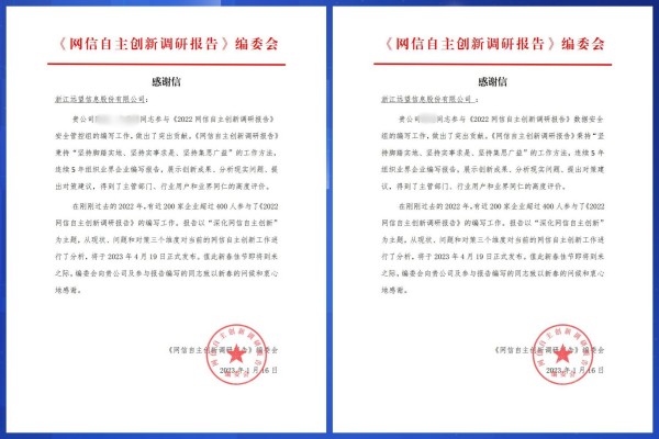 4月19日,網(wǎng)信自主創(chuàng )新調研報告編委會(huì )在“第六屆關(guān)鍵信息基礎設施自主安全創(chuàng )新論壇-暨紀念‘419’講話(huà)發(fā)表七周年活動(dòng)”上正式發(fā)布了《2022網(wǎng)信自主創(chuàng )新調研報告》。遠望信息作為安全防控體系構建領(lǐng)域的實(shí)力廠(chǎng)商參與編寫(xiě)了報告安全管控、數據安全等章節內容,得到編委會(huì )專(zhuān)家一致肯定,并獲致信感謝。